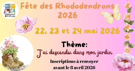 Rejoignez-nous pour célébrer la beauté des rhododendrons lors de la Fête des Rhododendrons 2026, qui se déroulera les 23, 24 et 25 mai 2026 à Châteauneuf-sur-Loire.